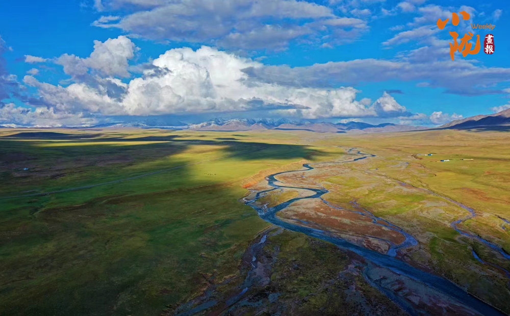 這里水草豐盈,生態(tài)和諧,碧綠的牧場,潔白的羊群,飄飛的經(jīng)幡,給寧靜的草原,注入了空靈的氣息。