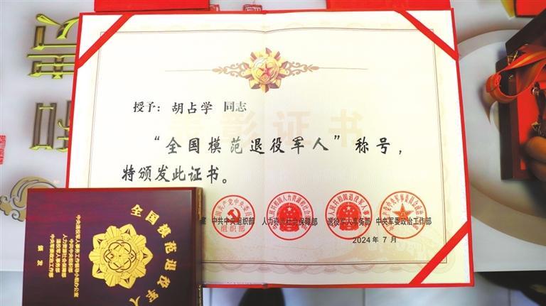 今年8月,胡占學(xué)被人力資源和社會(huì)保障部、中共中央組織部、退役軍人事務(wù)部、中央軍委政治工作部等軍地相關(guān)部門聯(lián)合授予“全國模范退役軍人”榮譽(yù)稱號(hào),這是對(duì)退役軍人的最高榮譽(yù)和最大褒獎(jiǎng)。