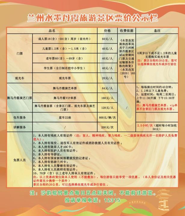 2.售票方式為隨車售票(可單獨(dú)購買專線車車票)或在蘭州水墨丹霞公眾號購票通道進(jìn)行線上約票。