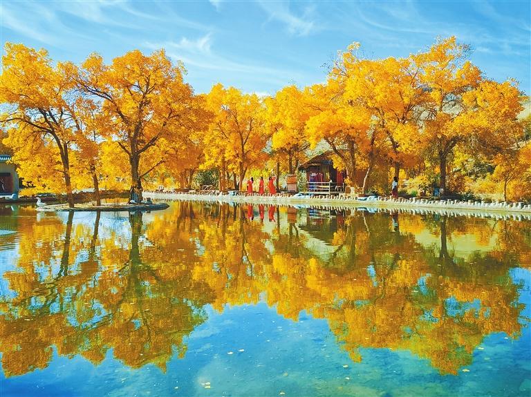層林盡染的興隆山國家級自然保護區(qū),紅黃綠相間、滿目絢麗、美不勝收;置身在民樂縣西區(qū)公園,近可抬眼觀紅葉,遠可舉目望雪山,天如洗,湖如鏡,令人心曠神怡;以壯麗胡楊林景觀聞名遐邇的阿克塞縣胡楊峽景區(qū),金黃色的葉片在陽光下閃閃發(fā)光,形成一道亮麗的風(fēng)景線;在蔚藍天空的映襯下,秋日的陽關(guān)遺址更顯雄渾肅穆;暖陽下,旅客乘坐蘭張高鐵出行,欣賞秋天饋贈的每一道風(fēng)景……