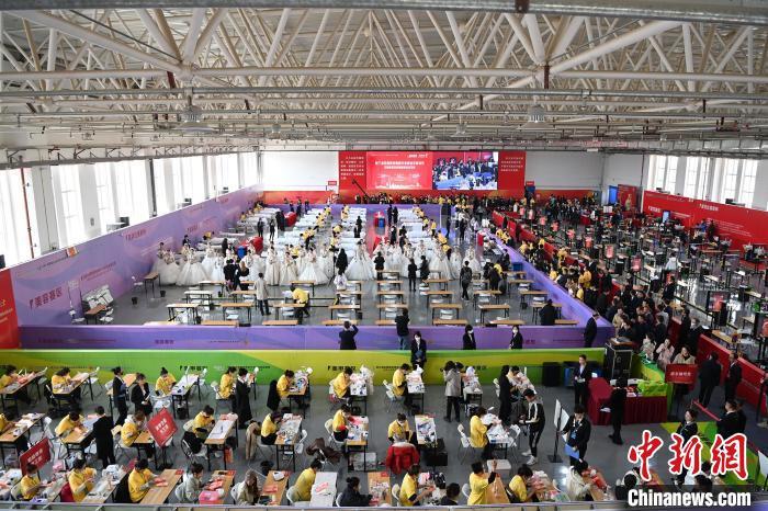 圖為第三屆全國美發(fā)美容行業(yè)職業(yè)技能競賽比賽現(xiàn)場?!【琶赖┰?nbsp;攝