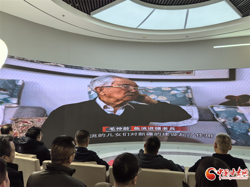 現(xiàn)場,與會領導及嘉賓一同觀看了紀錄片《我的戎疆歲月》宣傳片,臨洮進疆老兵代表毛仲齡老人通過VCR回憶和分享了自己感人的戎疆歲月。