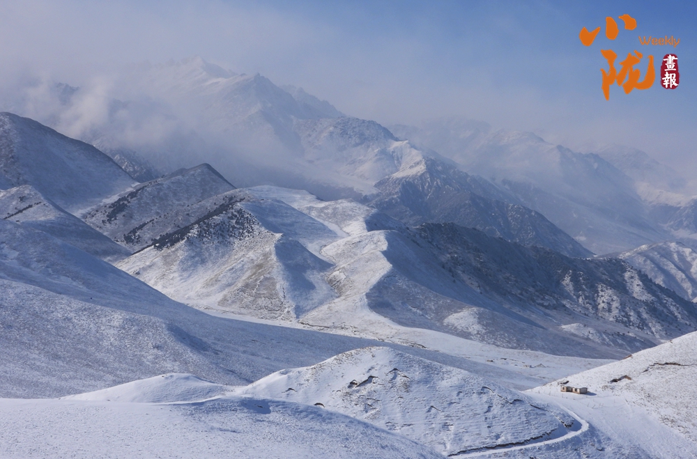 湛藍(lán)的天空下,山巒層層疊疊,銀裝素裹,閃爍著耀眼的光芒。