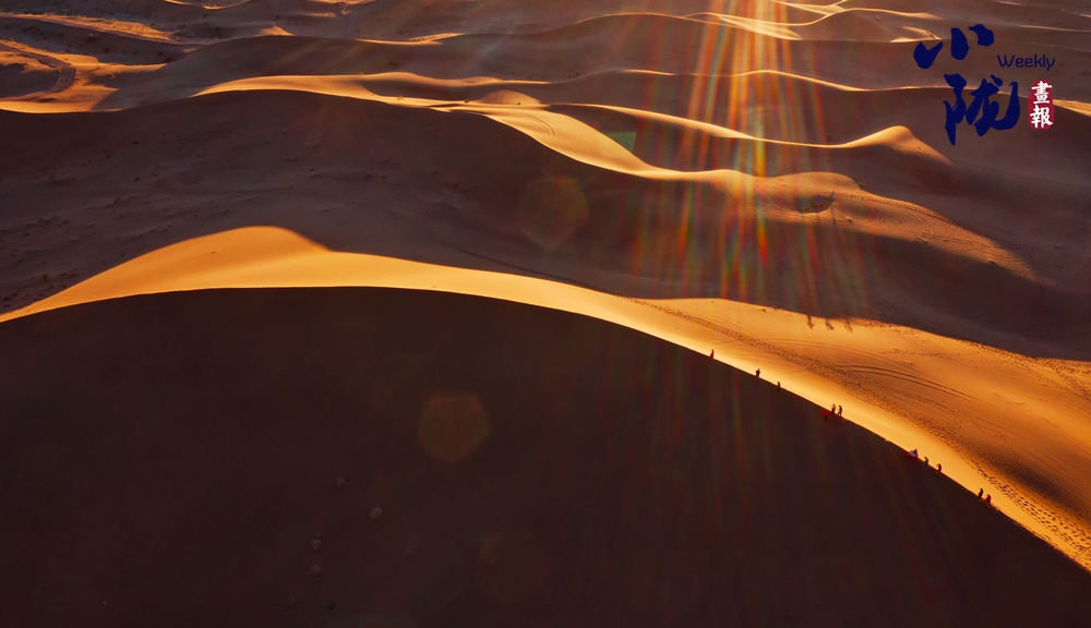 夕陽西下,極目遠眺,在余暉照耀下,連綿起伏的沙丘似金色的海浪,一波接著一波,涌向天際。那細膩的沙紋,在陽光的輕撫下,宛如歲月鐫刻的痕跡,每一道褶皺都藏著故事。