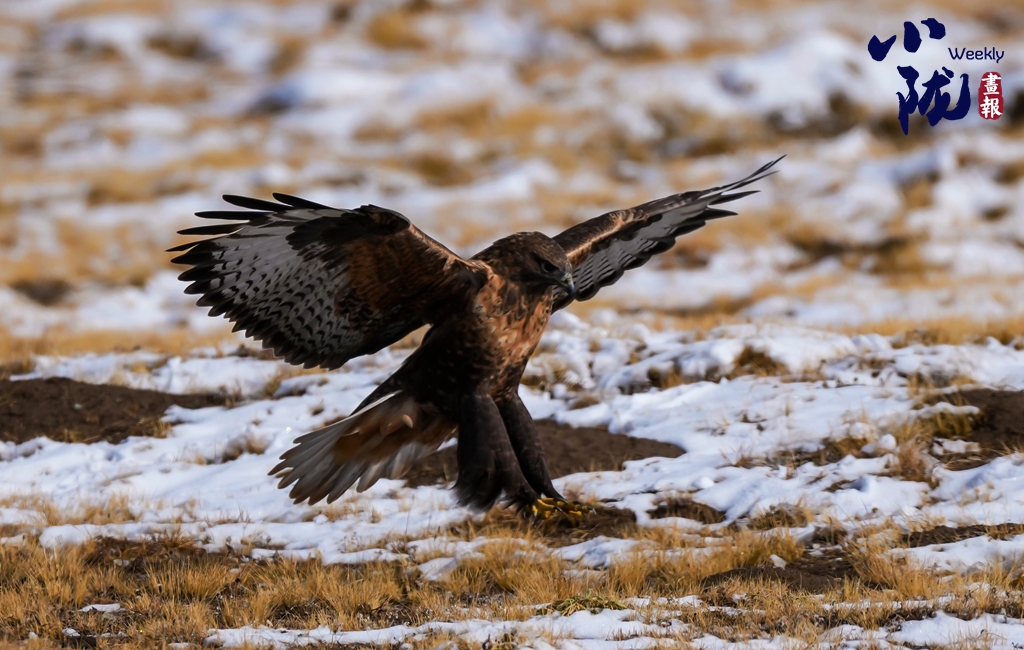 草原雕是國家一級重點保護野生動物,別名草原鷹。外貌兇悍、體形碩大的黃棕色雕,不同年齡階段及不同個體之間體色差異較大。喙灰色,腳黃色。飛行時兩翼平直,展開長度可達200cm,滑翔時兩翼略彎曲,尾有時呈形。由于張掖境內(nèi)生態(tài)環(huán)境持續(xù)改善,草原雕已逐漸成為肅南的越冬候鳥,每年11月底到次年4月初,在肅南濕地就能見到它的身影。