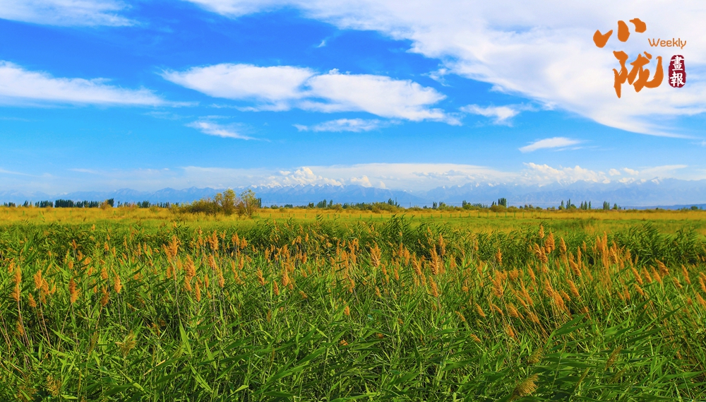 湖邊,蘆葦綠意盎然,隨風(fēng)泛起綠色的波浪,染翠了整個草湖。每當風(fēng)兒掠過,這些層層疊疊的綠意散發(fā)出沁人肺腑的草木清香。在這樣炎熱的日子里,看看這樣清澈的綠,夏天好像變得清涼起來。