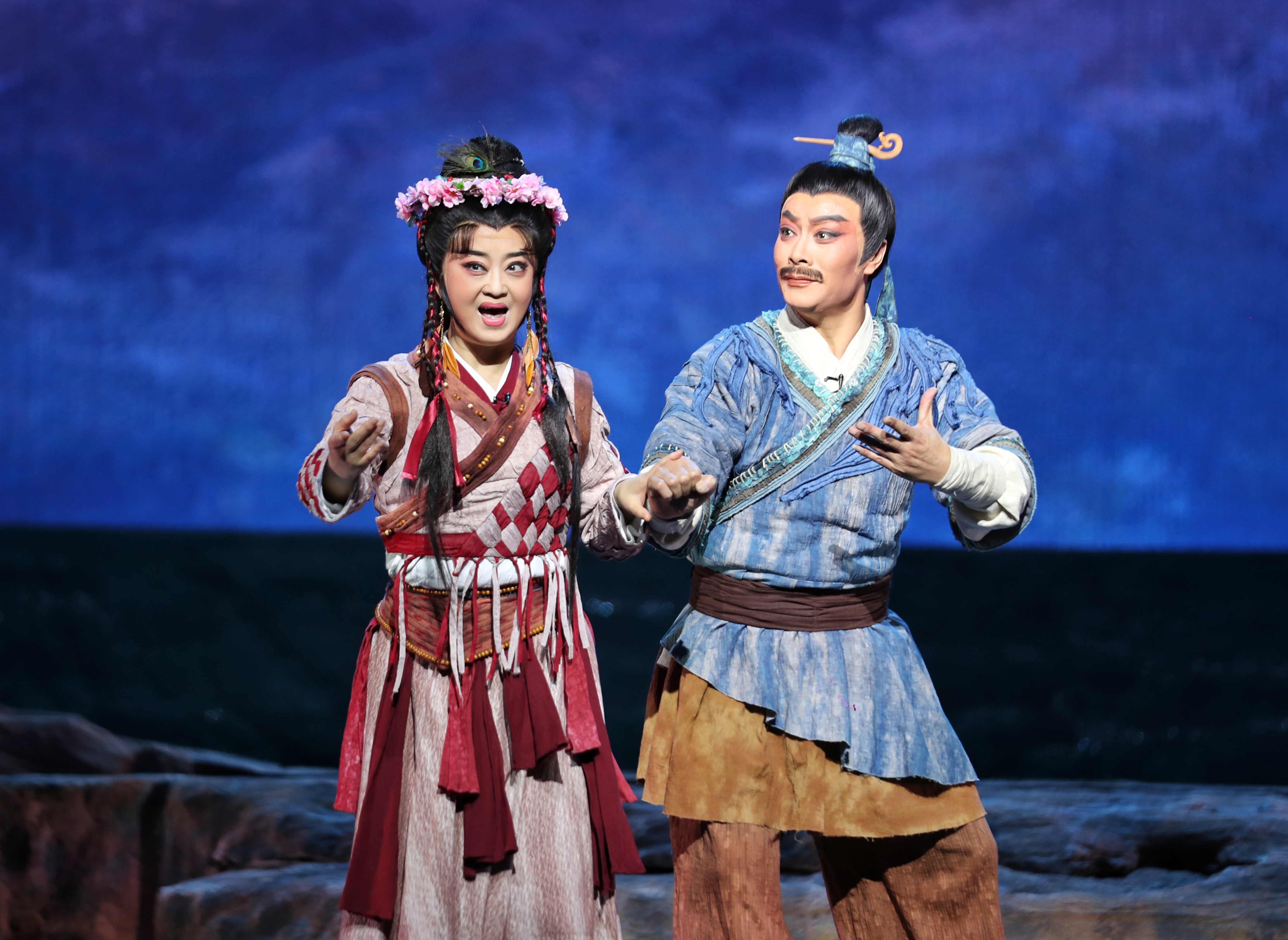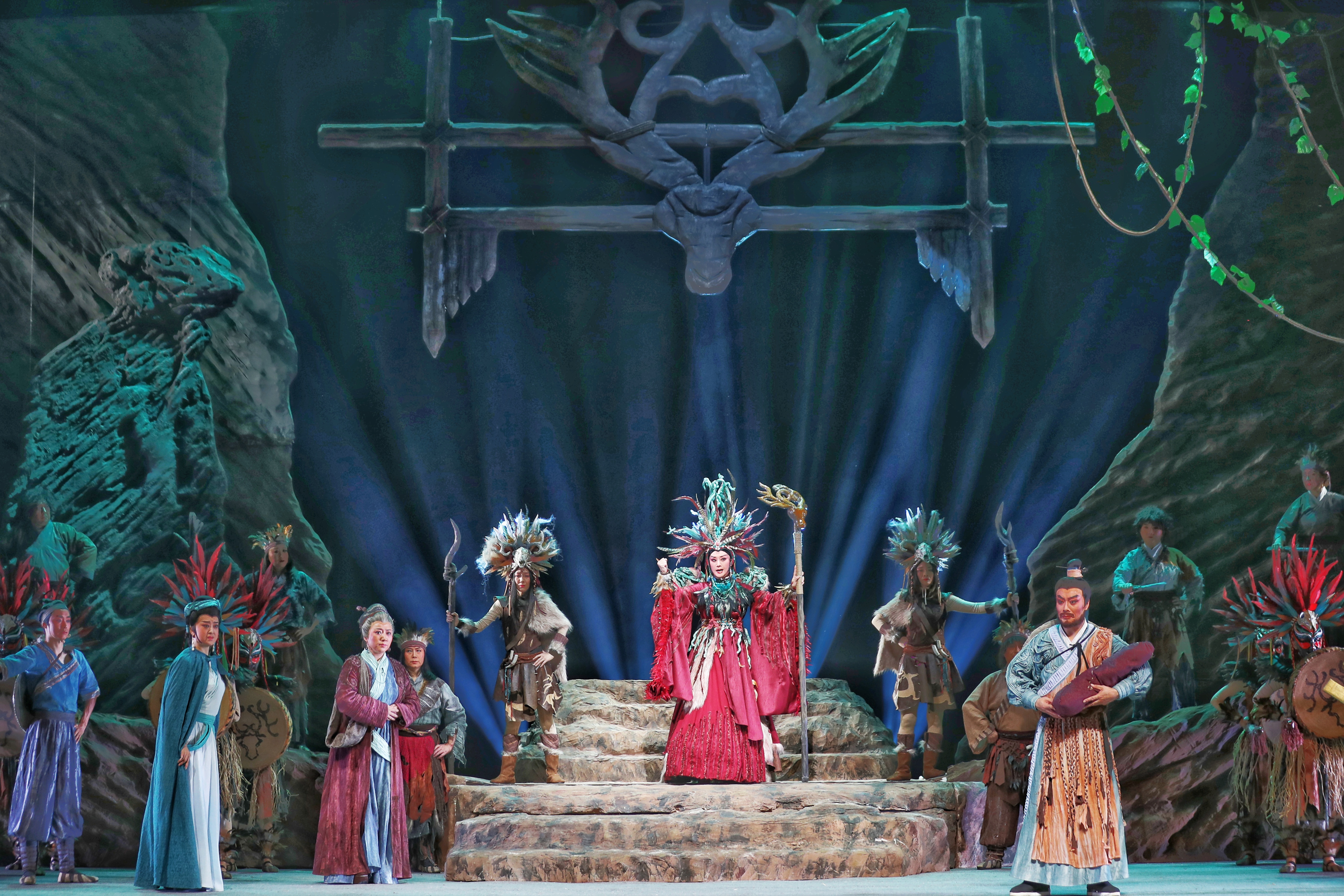 在兩個(gè)多小時(shí)的演出中,扮演“大禹”的邵炳德唱念做打俱佳,將一個(gè)人性化、頂天立地的大禹形象立于舞臺(tái)之上,三朵隴劇“梅花”雷通霞、佟紅梅、竇鳳霞,分別在劇中扮演山戎、大禹妻子涂嬌和禹母的角色,全體演員以精湛的表演,將大禹治水過(guò)程中天理與人性、親情與仇恨、生與死的抉擇演繹得淋漓盡致。