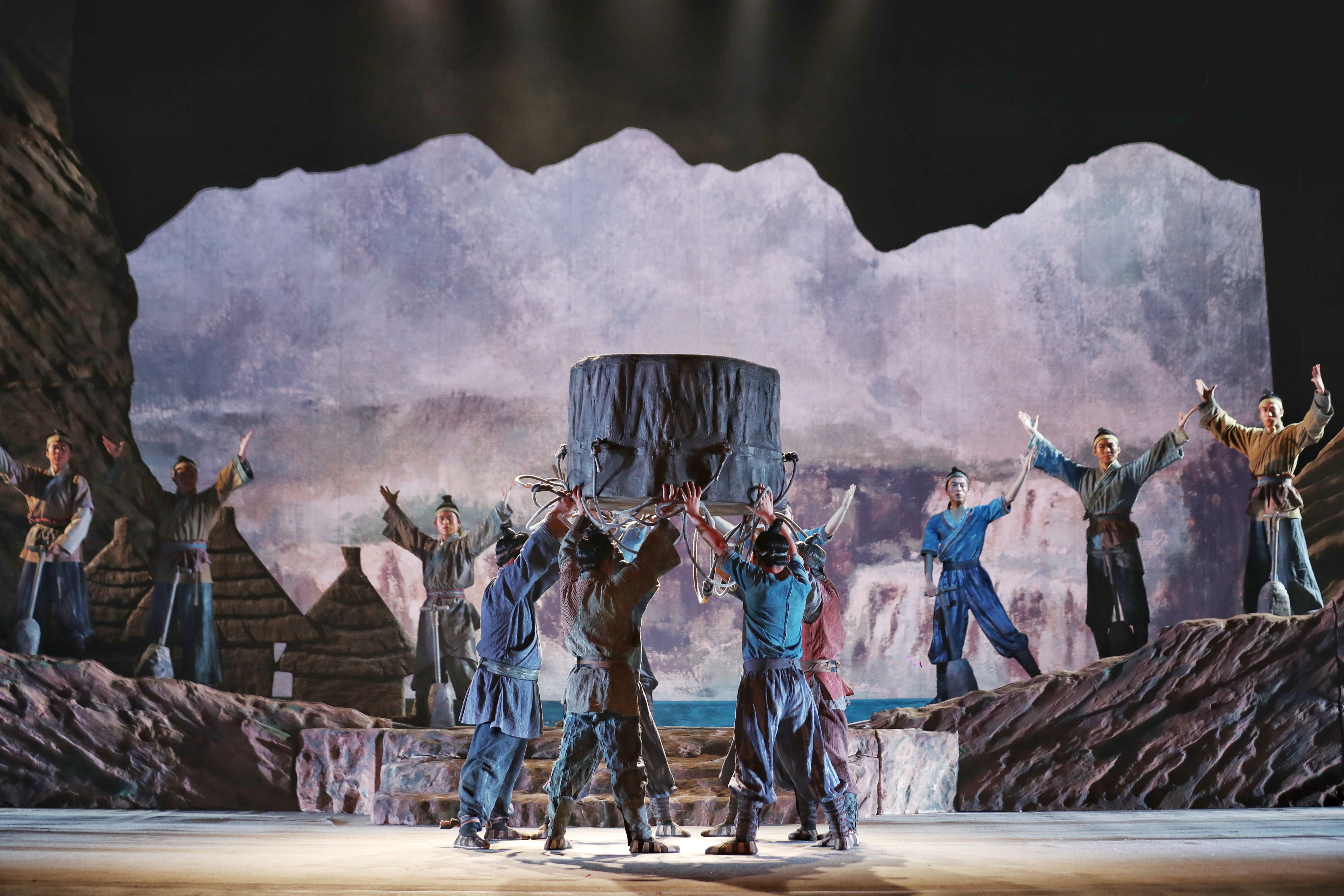 史書《尚書·禹貢》記載,大禹治水“導(dǎo)河于積石”。據(jù)考證,這里的“積石”就是甘肅省臨夏州積石山。在甘肅省文化和旅游廳全程指導(dǎo)下,甘肅省隴劇院歷時(shí)兩年精心籌備,主創(chuàng)團(tuán)隊(duì)多次赴積石山縣采風(fēng),先后十六次易稿完成劇本創(chuàng)作。全體劇組人員本著“宏大的主題和民族精神高度統(tǒng)一,黃河文化和地域特色高度統(tǒng)一,呈現(xiàn)內(nèi)容和藝術(shù)樣式高度統(tǒng)一,立意挖掘和昭示未來(lái)高度統(tǒng)一”的創(chuàng)作要求,歷經(jīng)四個(gè)多月的緊張排練,將“大禹治水源頭”故事搬上舞臺(tái)。