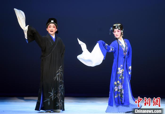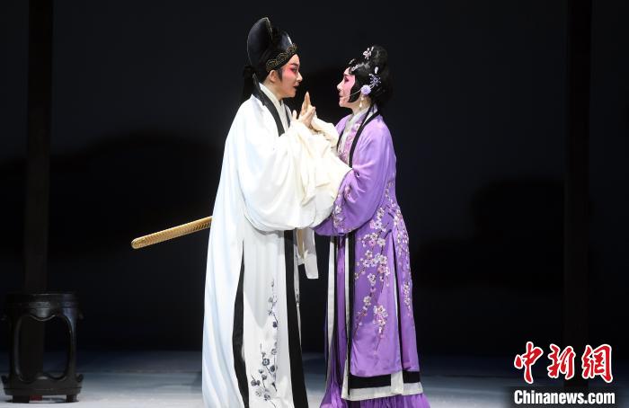 在劇中,唐琬由國家一級(jí)演員鄭全(右)飾演,陸游則由中國戲劇梅花獎(jiǎng)得主陳麗宇(左)飾演?!∮浾邉⒖筛?nbsp;攝