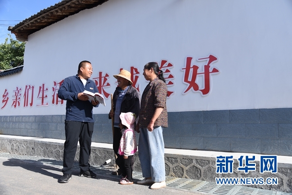 8月5日,元古堆村內(nèi),村支書朱惠軍正在進行普法工作。新華社記者 崔翰超 攝