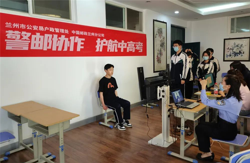 在由蘭州市公安局戶政管理處、七里河分局治安二大隊、小西湖派出所、酒泉路派出所的民警與郵政公司工作人員在學(xué)校共同舉行的業(yè)務(wù)辦理中,民警們分工協(xié)作,1名民警負(fù)責(zé)拍照、編號存儲,1名民警和1名郵政公司工作人員負(fù)責(zé)錄入辦證考生的指紋信息,1名民警負(fù)責(zé)二次核對采集信息,3—5分鐘就能完成一名學(xué)生的身份證全流程采集工作。人像采集時,民警還貼心地準(zhǔn)備了深色男女生外套,鏡子、梳子、皮筋、發(fā)卡、噴霧等美妝工具,確保每一名現(xiàn)場辦證的學(xué)生最終都能拿到滿意的身份證,信心滿滿的奔赴考場。蘭州公安專業(yè)、貼心、細(xì)致、高效的服務(wù),得到了廣大師生和家長的一致好評與交口稱贊。