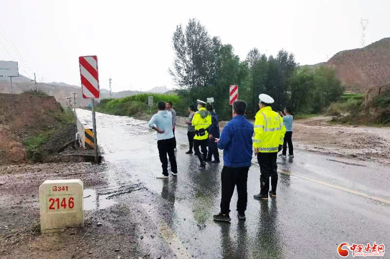8月4日,永登縣公安局交警大隊(duì)河橋中隊(duì)接到縣局指揮中心強(qiáng)對流天氣預(yù)警信息后,提前趕往G341線易發(fā)山洪路段開展交通疏導(dǎo),所在區(qū)域35人、15輛車安全撤離僅3分鐘后,G341線2174公里處發(fā)生路面坍塌,洪水漫過堤壩,道路被嚴(yán)重沖毀。