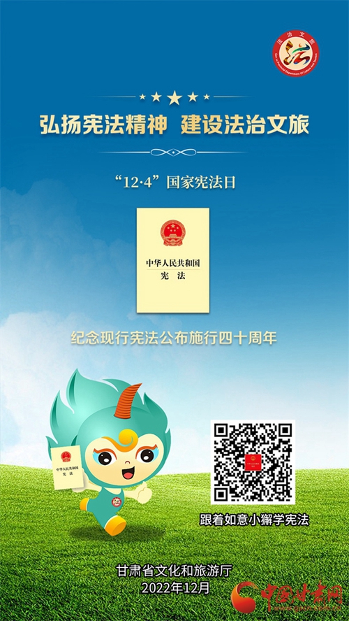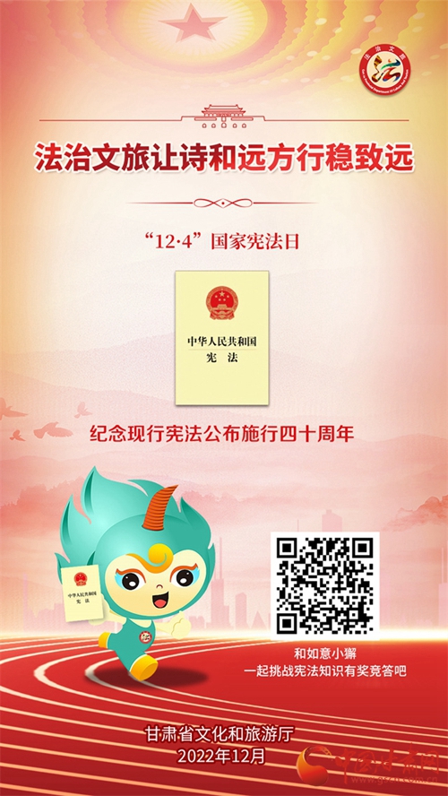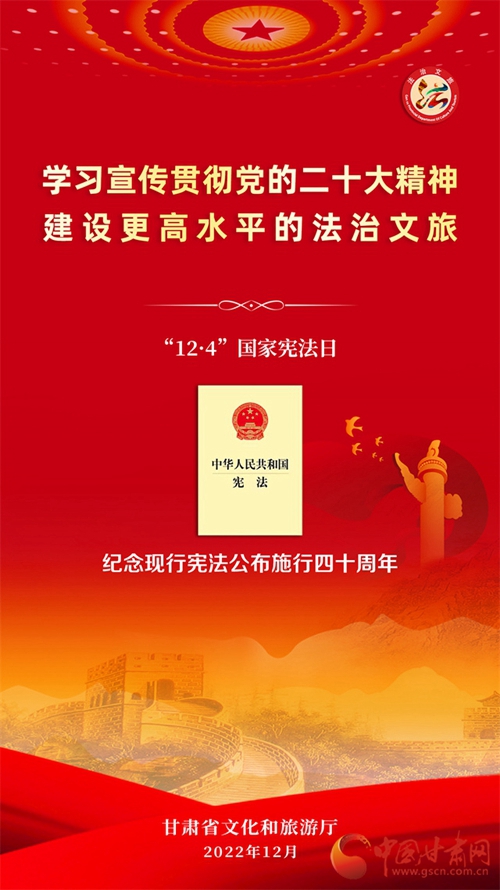 中國甘肅網(wǎng)12月7日訊 (本網(wǎng)記者 張?zhí)m琴)自12月4日國家憲法日暨憲法宣傳周啟動以來,我省各地開展了形式多樣的宣傳活動,為深入學(xué)習(xí)宣傳貫徹黨的二十大精神,不斷增強(qiáng)人民群眾法治意識,形成全民維護(hù)憲法的濃厚氛圍,同時(shí)加強(qiáng)文化和旅游的法治宣傳教育,省文旅廳近日開展了國家憲法日暨憲法宣傳周系列活動。