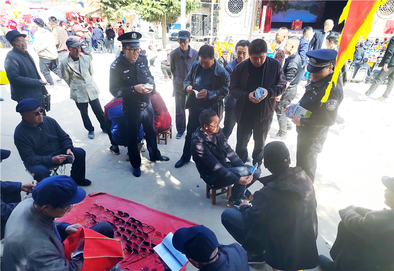 據(jù)悉,開(kāi)春以來(lái),甘谷縣鄉(xiāng)村群眾活動(dòng)多種多樣,各基層派出所民警也隨著群眾活動(dòng)的開(kāi)展“忙”了起來(lái),結(jié)合“三抓三促”行動(dòng)工作,深入群眾中間,利用鄉(xiāng)村廟會(huì)、鄉(xiāng)鎮(zhèn)集會(huì)、游園賞花等人流量較多的有利時(shí)機(jī),積極開(kāi)展宣傳活動(dòng)。