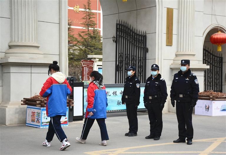 派出所民警在校園門(mén)口執(zhí)勤(蘭州日?qǐng)?bào)供圖)