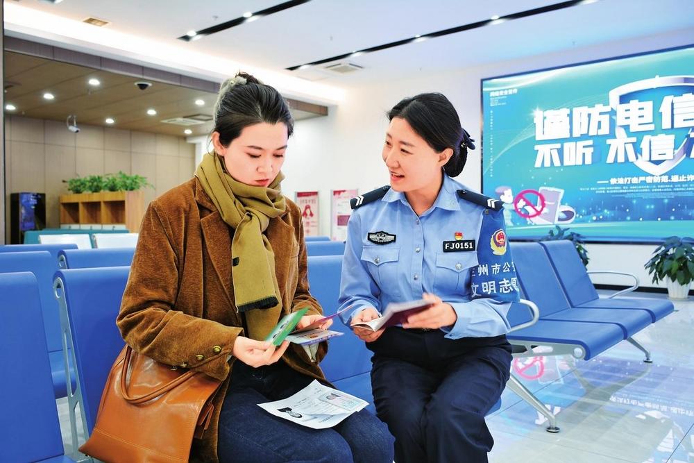 12月4日上午,蘭州市公安局出入境辦證大廳輔警方海燕向市民介紹出入境業(yè)務(wù)簡化辦理流程等事項(xiàng)。新甘肅·甘肅法治報記者張瑞軍攝