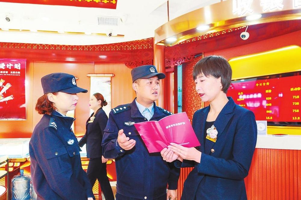 3月14日,蘭州市公安局七里河分局組織多個派出所民輔警走進(jìn)商超、餐飲、副食品店等營業(yè)場所,開展“3·15”消費(fèi)者權(quán)益日普法宣傳和專項(xiàng)檢查,倡導(dǎo)商家誠實(shí)守信合法經(jīng)營,為消費(fèi)者營造安全、放心的消費(fèi)環(huán)境。 新甘肅·甘肅法治報(bào)記者張瑞軍攝
