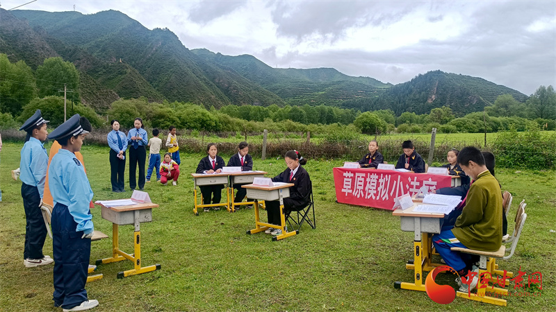 中國甘肅網(wǎng)7月5日訊(西北角·中國甘肅網(wǎng)記者 宋芳科 趙志富)7月4日,一場別開生面的模擬法庭在草原上舉行。來自甘南州合作市勒秀鎮(zhèn)中心小學的學生們,通過模擬庭審,上了一堂生動的普法課。這也是甘南州兩級檢察機關(guān)“崗拉梅朵”未檢工作室又一次送法進校園,為未成年人的成長撐起堅實的法律保護傘。