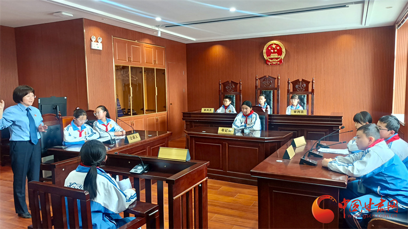 同樣,7月4日,在“崗拉梅朵”未成年人法治教育基地,也有一場模擬法庭庭審在進行,來自合作一小五年級的學生在這里開庭審理一起盜竊案。