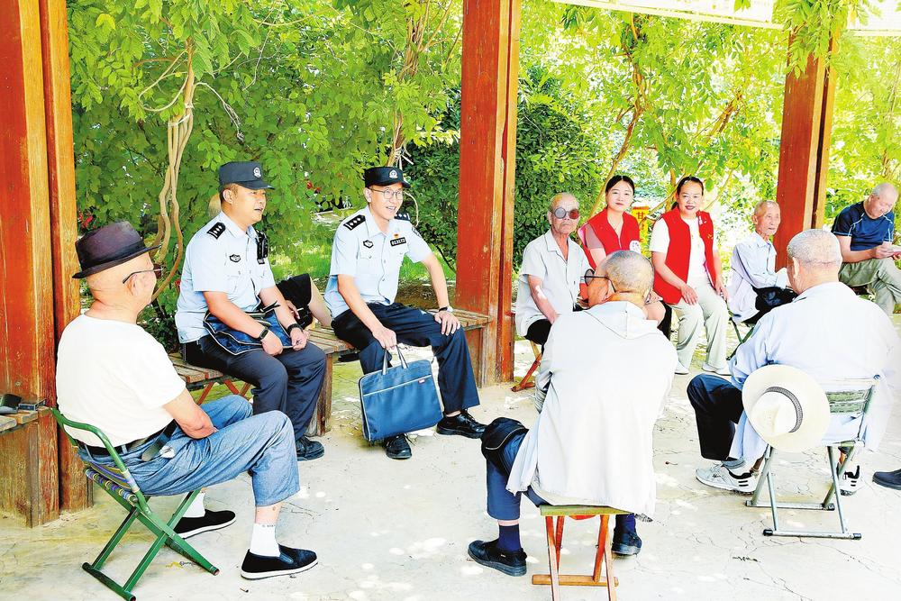 7月7日,銀灘路派出所民警聯(lián)合網(wǎng)格員主動走訪社區(qū)群眾,開展法治宣傳、排查矛盾糾紛。