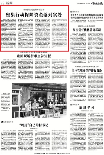 今年2月,抓住資金保障這個鞏固拓展和有效銜接的關(guān)鍵環(huán)節(jié),甘肅省紀(jì)委監(jiān)委派出調(diào)研組赴省財政廳、省扶貧辦、省農(nóng)業(yè)農(nóng)村廳等部門,就做好鞏固拓展和鄉(xiāng)村振興資金監(jiān)督開展調(diào)研,并深入天水市甘谷縣“解剖麻雀”。目前,正在研究制定相關(guān)監(jiān)督工作方案,從財政投入政策落實、資金全流程運行、各級責(zé)任落實3個方面梳理監(jiān)督任務(wù),加強對用于支持鞏固拓展和鄉(xiāng)村振興“7類資金”的監(jiān)督,重點防范和解決潛在的風(fēng)險隱患,嚴(yán)肅查處向資金“伸黑手”的腐敗問題,確保資金投入有力有序,使用安全規(guī)范。