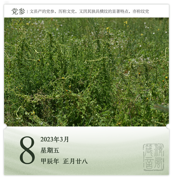 簡介:黨參,多年生纏繞藤本,我國有名的藥食兩用植物,具有健脾益肺、養(yǎng)血生津之功效。現(xiàn)代藥理研究表明,黨參還具有增強(qiáng)機(jī)體免疫力、保護(hù)胃腸道黏膜及抗?jié)?、促進(jìn)造血機(jī)能、延緩衰老等多種藥理作用。黨參也是保健品,可入膳食,可做茶也可泡酒?;ü?-10月。文縣產(chǎn)的黨參,歷稱“文黨”,又因其獨(dú)具橫紋的顯著特點(diǎn),亦稱“紋黨”,質(zhì)地優(yōu)良,歷史悠久,生長特殊,加工考究,入藥精道。其藥用價值與人參并列,為質(zhì)高的滋補(bǔ)佳品。