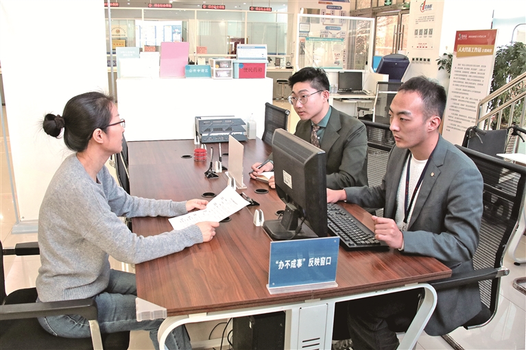 山東省青島市黃島區(qū)紀(jì)委監(jiān)委聚焦漠視群眾合理訴求、推諉扯皮“打太極”、不擔(dān)當(dāng)不作為等不正之風(fēng),“懲治防”一體發(fā)力,堅決糾治不擔(dān)當(dāng)不作為問題。圖為該區(qū)紀(jì)檢監(jiān)察干部在“辦不成事”反映窗口向群眾了解有關(guān)情況。杜翔宇 攝