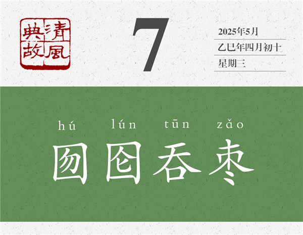 囫圇,就是完完整整的意思;把棗子完完整整地吞咽下去,就叫“囫圇吞棗”。我們常說的“囫圇吞棗”,原來是一個傻子自作聰明的“發(fā)明”。雖然完完整整地吞下了一個棗子,但嚼也不嚼,連棗核也不用吐,連棗子什么味道也不用嘗,直接就咽下去了,這是聰明之舉嗎?吃東西為什么要咀嚼,既是為了品嘗滋味、享受過程,也是為了更好地消化吸收、獲取營養(yǎng)。后世即以“囫圇吞棗”為典,比喻學習或借鑒過程中的死記硬背、照本宣科現(xiàn)象。看似據(jù)為己有了,實則只是走了個過場而已。朱自清《論詩學門徑》:“一個高中文科的學生,與其囫圇吞棗或走馬看花地讀十部詩集,不如仔仔細細地背誦三百首詩。”