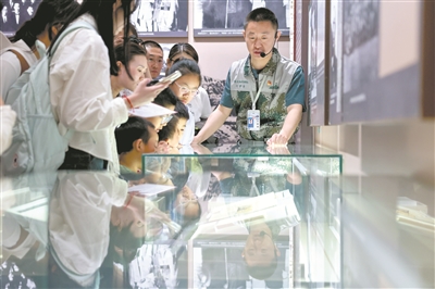 圖為志愿者在中國(guó)人民革命軍事博物館為參觀者講解抗戰(zhàn)歷史。新華社記者 劉金海 攝
