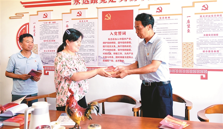 近日,安徽省宣城市宣州區(qū)紀委監(jiān)委第一黨支部來到“1+1”黨建共建村級黨支部,為村級紀檢委員送上“政治生日”賀卡。姚駿 攝