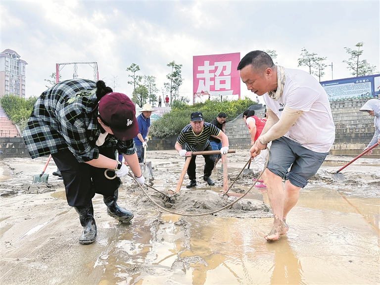 廣西壯族自治區(qū)柳州市融安縣紀委監(jiān)委聞“汛”而動,緊盯防汛統(tǒng)籌協(xié)調(diào)等關鍵環(huán)節(jié)開展全程監(jiān)督檢查。圖為日前,該縣紀檢監(jiān)察干部在河東龍舟廣場開展災后清淤工作。覃燕 攝