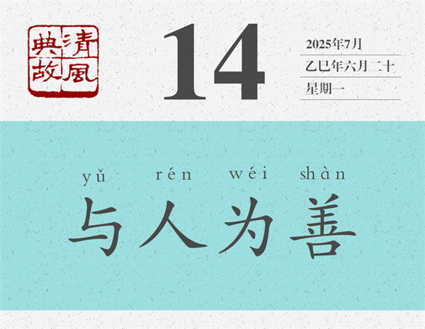 《孟子·公孫丑上》有一段孟子關(guān)于“與人為善”的闡述:“子路,人告之以有過,則喜。禹聞善言,則拜。大舜有大焉,善與人同,舍己從人,樂取于人以為善。自耕稼、陶、漁以至為帝,無非取于人者。取諸人以為善,是與人為善者也。故君子莫大乎與人為善。”