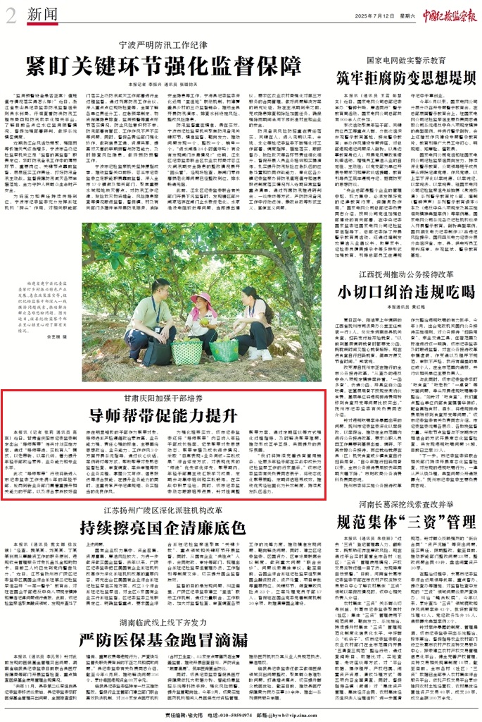 近日,甘肅省慶陽(yáng)市紀(jì)委監(jiān)委制定出臺(tái)“導(dǎo)師幫帶”練兵計(jì)劃實(shí)施方案,通過“導(dǎo)師帶徒、實(shí)踐育人”模式,以老帶新、以案代訓(xùn),著力提升年輕干部政治素養(yǎng)、業(yè)務(wù)能力和專業(yè)水平。