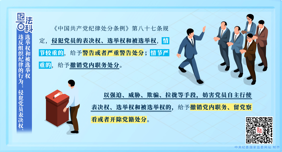 從各地紀(jì)委監(jiān)委通報(bào)的典型案例看,一些黨員干部和公職人員通過(guò)各種手段侵犯黨員的表決權(quán)、選舉權(quán)和被選舉權(quán),均受到嚴(yán)肅處理。