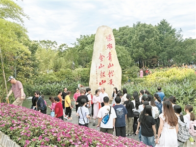 20年來(lái),在綠水青山就是金山銀山理念的指引下,浙江省安吉縣余村努力修復(fù)生態(tài),發(fā)展生態(tài)旅游,探索出一條環(huán)境保護(hù)與經(jīng)濟(jì)發(fā)展相協(xié)調(diào)的新路。游客正在“綠水青山就是金山銀山”石碑前拍照留念。
