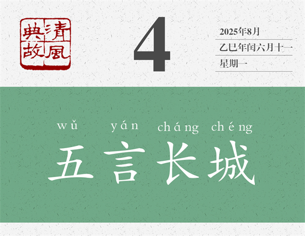 唐朝時處士、詩人秦系,與同時代的詩人劉長卿關(guān)系非常好。《新唐書•隱逸傳•秦系傳》:“(秦系)與劉長卿善,以詩相贈達(dá)。權(quán)德輿曰:‘長卿自以為五言長城,系用偏師攻之。”權(quán)德輿,字載之,天水略陽(今甘肅省秦安縣)人,后徙潤州丹徒(今江蘇省鎮(zhèn)江市),唐朝宰相、詩人、文學(xué)家、文章家,他說的意思是:劉長卿自認(rèn)為他是“五言長城”,地位牢固,堅不可摧,但秦系不與他正面交鋒,而是從側(cè)翼發(fā)起進(jìn)攻,即使老了也從不懈怠。
