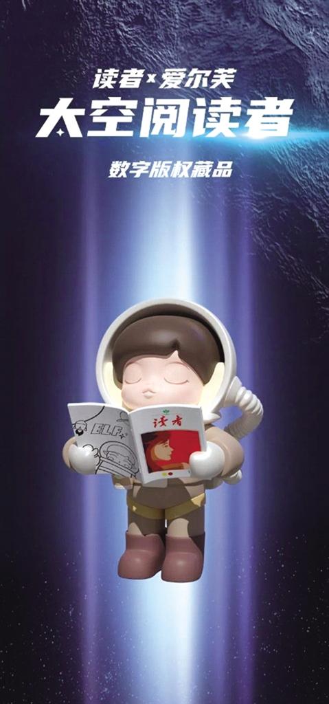 據(jù)介紹,“讀者×愛爾芙.太空閱讀者”是莫嘰文化聯(lián)手讀者出版?zhèn)髅焦煞萦邢薰就瞥龅臄?shù)字版權(quán)藏品。愛爾芙是莫嘰旗下火爆主題IP ,是一位水澤精靈,擁有治愈、溫暖、親和、陪伴的特質(zhì)。本次藏品以3D形態(tài)呈現(xiàn)愛爾芙在太空中手捧《讀者》閱讀的樣子,借此致敬不斷探索、不斷求知的中國(guó)航天人。