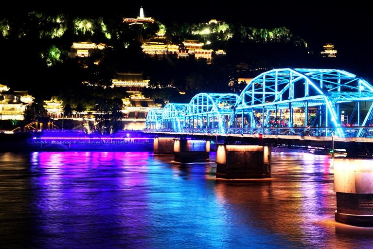 中國甘肅網(wǎng)5月24日訊 據(jù)蘭州日報報道記者 張建平 攝)為迎接甘肅省第十四次黨代會勝利召開,我市在標(biāo)志性橋梁、廣場及樓體精心組織以“蘭州藍”為主題的燈光秀,營造濃厚的喜慶氛圍。中山橋、黃河樓等處燈光展示“蘭州藍”,這顯示了全市上下守護碧水藍天的信心,更昭示著全市黨員干部堅定垂范清廉蘭州,共建政治生態(tài)“蘭州藍”的決心。