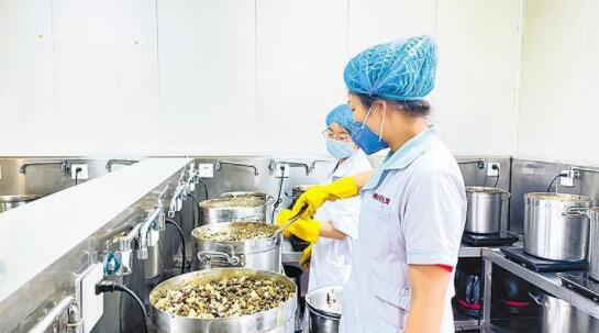 盛夏時節(jié)暑熱難耐,佛慈養(yǎng)生堂煎藥中心的室內(nèi)溫度更是高達43攝氏度。浸泡、熬制、清湯、打包……煎藥師們一絲不茍,嚴格按照要求完成每一道工序。