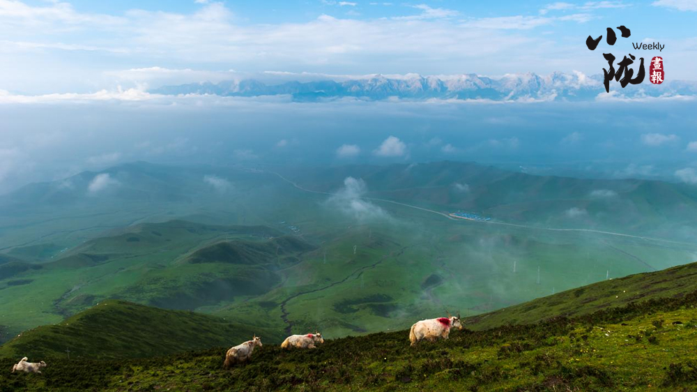 山頂被譽(yù)為草原白珍珠的天祝白牦牛和羊群云中漫步,云下蔥蘢牧場(chǎng)若隱若現(xiàn),一幅水墨山水畫卷徐徐呈現(xiàn)在眼前。