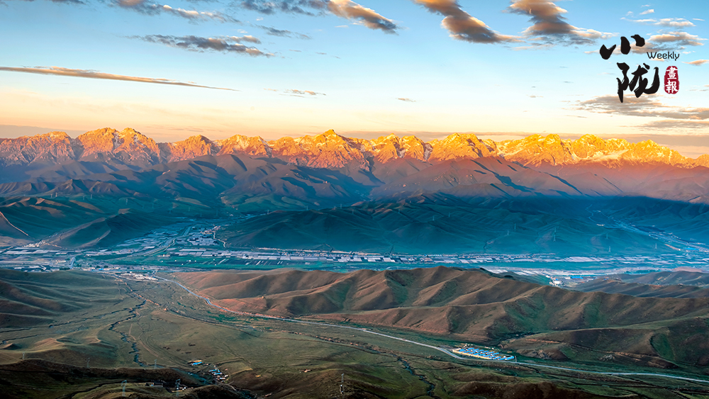 近處茵茵草場(chǎng),滿是嫩盈盈的綠;遠(yuǎn)處祁連山山脊起伏,黛綠色的基底上長(zhǎng)滿山花。