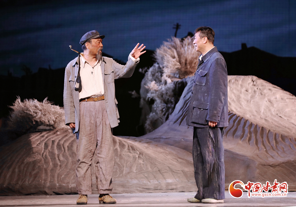 隨著演出大幕緩緩開啟,原甘肅省話劇院國家一級演員、國務院政府特殊津貼專家、中國戲劇表演梅花獎獲得者康愛石,國家一級演員、中國話劇“金獅獎”獲得者常貴順,國家一級演員、中國戲劇表演梅花獎獲得者祁寶泉等“老甘話人”,以生動的表演,藝術再現(xiàn)了年逾半百的“六老漢”卷起鋪蓋挺進八步沙,用愚公精神創(chuàng)造的綠色奇跡。