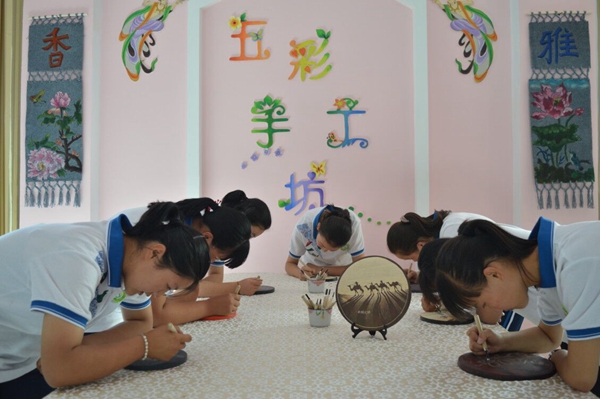 敦煌市黃渠中學(xué)學(xué)生學(xué)習(xí)木板雕刻畫(huà)。敦煌市委宣傳部供圖