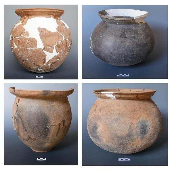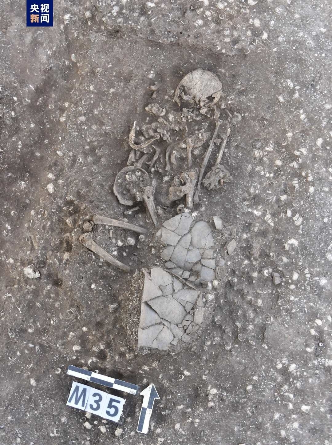 古城村遺址面積約4.2萬平方米,現(xiàn)存的貝丘堆積最厚處達(dá)6.5米,由大量尾部被敲破的螺螄殼與灰土層交替堆疊形成。碳十四測定年代為距今3600至2500年,約相當(dāng)于中原地區(qū)的商代至兩周時(shí)期。商代遺存可分為早晚兩段,早段發(fā)現(xiàn)保存完整的橢圓形環(huán)壕聚落,由中心臺地、外圍環(huán)壕和護(hù)坡組成,中心臺地面積約27000平方米,環(huán)壕和護(hù)坡周長約600米,這種聚落格局一直延續(xù)至兩周時(shí)期。商代晚段發(fā)現(xiàn)一批土坑墓和甕棺葬。兩周時(shí)期的遺存以房址、螺殼堆、灰燼、活動面等居住類遺跡為主,房址多為方形半地穴式。出土青銅器、陶器、玉器、石器、骨器、木器等文物4000余件。