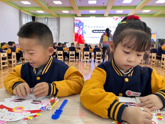孩子們巧手繪制臉譜。山丹縣東街幼兒園供圖