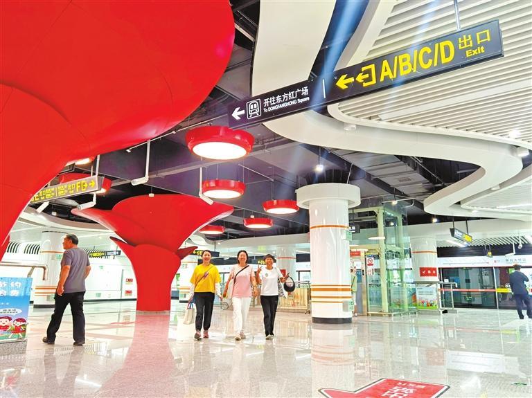 “我住在附近時刻關(guān)注著工程進(jìn)展,圍擋板拆除后,今天近距離接觸站口還是第一次。”在雁白大橋站A口,關(guān)注開通試運(yùn)營儀式的李阿姨抱著小孫子早早就來到地鐵站,李阿姨準(zhǔn)備當(dāng)天上午地鐵開通時,乘坐首趟列車,由雁白大橋到東方紅廣場感受地鐵2號線一期全程的快速與舒適。