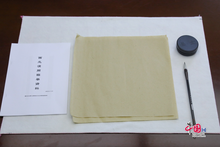蘭州大學(xué)古文字學(xué)強基計劃同學(xué)臨摹簡牘所用的資料與文具(拍攝于7月31日)。中國網(wǎng)記者 鄭偉 攝