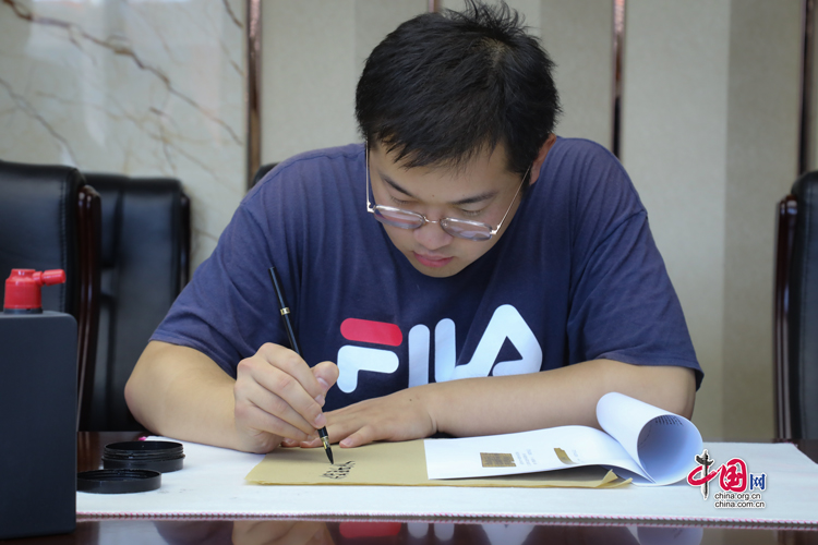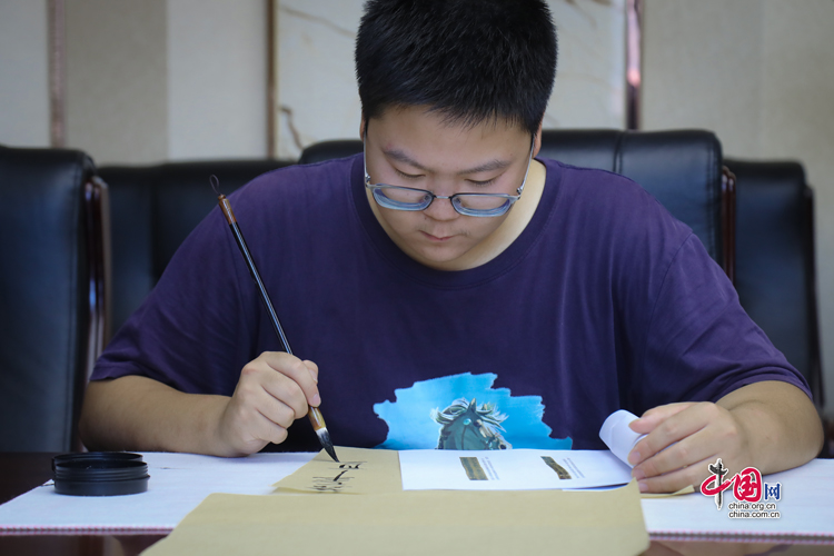 7月31日,蘭州大學(xué)古文字學(xué)強基計劃同學(xué)正在臨摹簡牘。中國網(wǎng)記者 鄭偉 攝