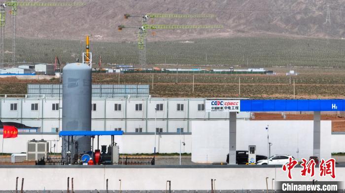 8月10日,甘肅張掖市光儲(chǔ)氫熱綜合應(yīng)用示范項(xiàng)目綜合加注站。中能綠電(張掖)公司供圖