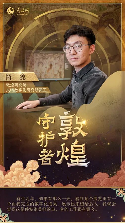 在敦煌研究院文物數(shù)字化研究所,工作人員們正開展數(shù)字化項(xiàng)目,將莫高窟的壁畫和雕塑變成數(shù)字化產(chǎn)品。陳鑫就是其中一員,在文物數(shù)字化研究所工作的四年,他負(fù)責(zé)壁畫的數(shù)字化處理。“我們的目標(biāo)是利用現(xiàn)代技術(shù)保護(hù)這些文物,讓它們活起來并傳承下去,讓我們的后代能夠看到它們。”